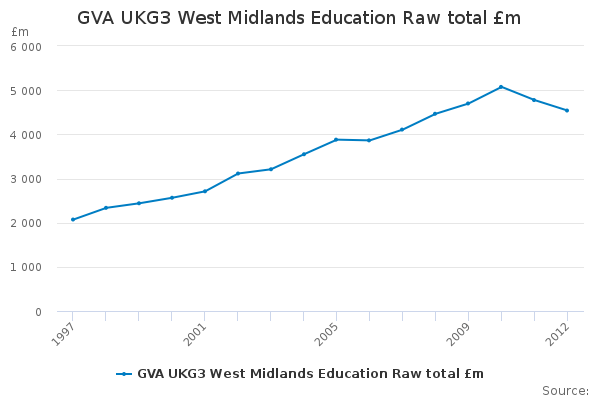 Download this time seriesGVA UKG3 West Midlands Education Raw total £m