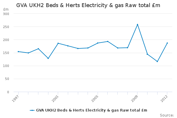 Download this time seriesGVA UKH2 Beds & Herts Electricity & gas Raw total £m