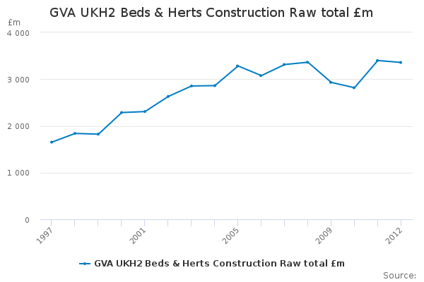 Download this time seriesGVA UKH2 Beds & Herts Construction Raw total £m
