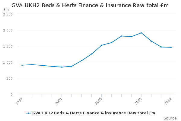 Download this time seriesGVA UKH2 Beds & Herts Finance & insurance Raw total £m