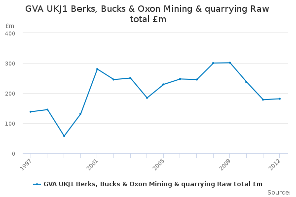 Download this time seriesGVA UKJ1 Berks, Bucks & Oxon Mining & quarrying Raw total £m