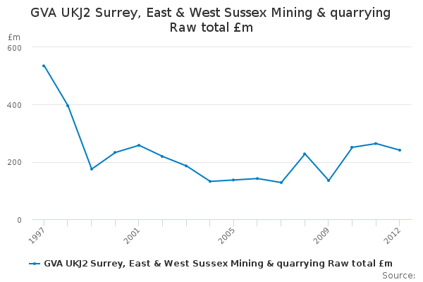 Download this time seriesGVA UKJ2 Surrey, East & West Sussex Mining & quarrying Raw total £m