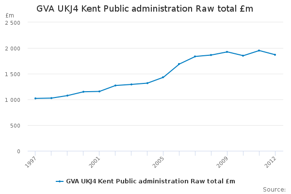 Download this time seriesGVA UKJ4 Kent Public administration Raw total £m