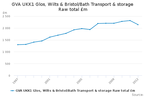 Download this time seriesGVA UKK1 Glos, Wilts & Bristol/Bath Transport & storage Raw total £m