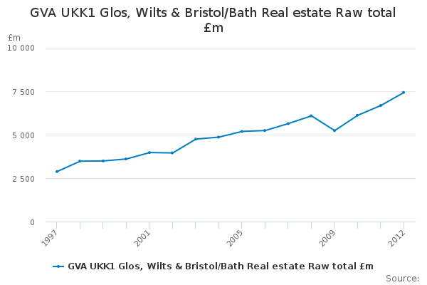 Download this time seriesGVA UKK1 Glos, Wilts & Bristol/Bath Real estate Raw total £m