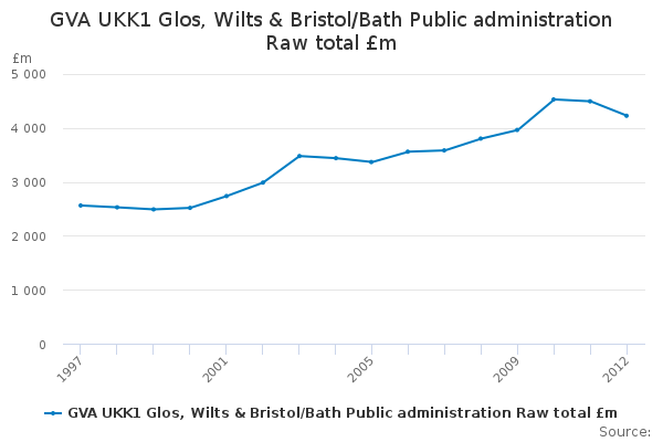 Download this time seriesGVA UKK1 Glos, Wilts & Bristol/Bath Public administration Raw total £m