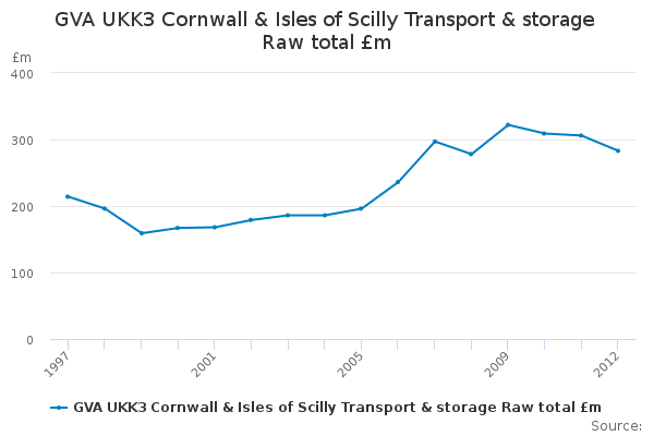 Download this time seriesGVA UKK3 Cornwall & Isles of Scilly Transport & storage Raw total £m