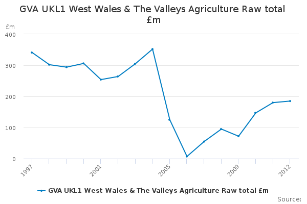 Download this time seriesGVA UKL1 West Wales & The Valleys Agriculture Raw total £m