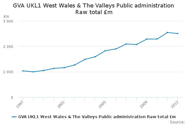 Download this time seriesGVA UKL1 West Wales & The Valleys Public administration Raw total £m