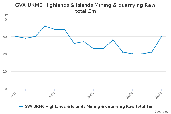 Download this time seriesGVA UKM6 Highlands & Islands Mining & quarrying Raw total £m