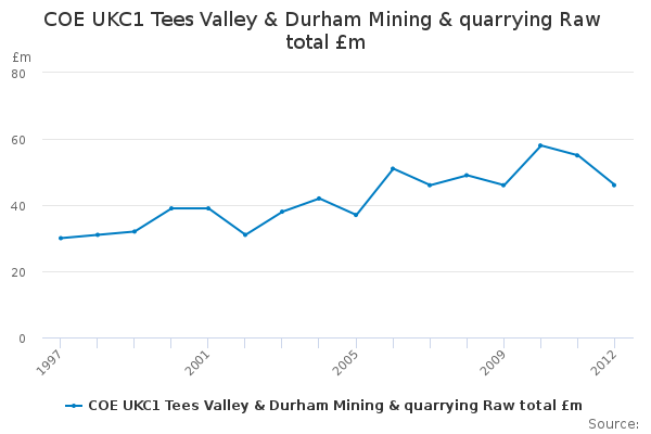 Download this time seriesCOE UKC1 Tees Valley & Durham Mining & quarrying Raw total £m