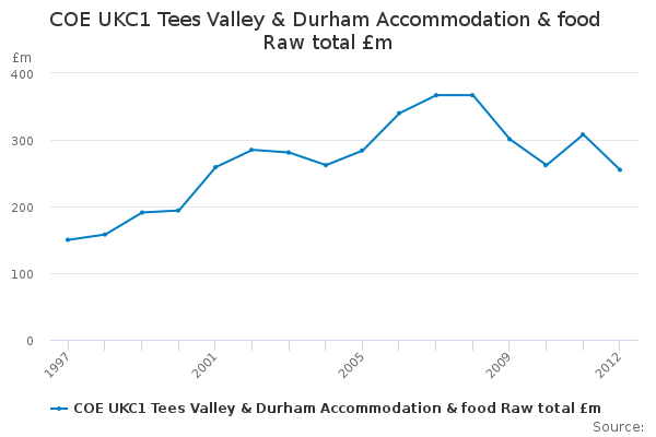 Download this time seriesCOE UKC1 Tees Valley & Durham Accommodation & food Raw total £m