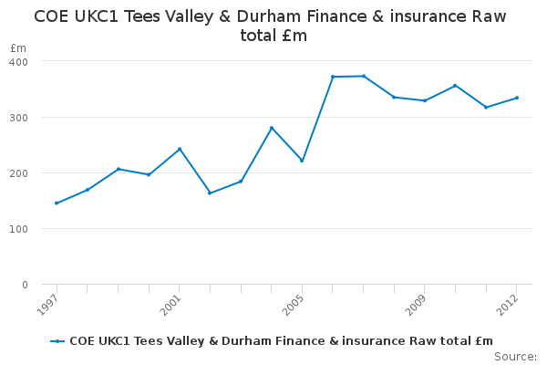 Download this time seriesCOE UKC1 Tees Valley & Durham Finance & insurance Raw total £m