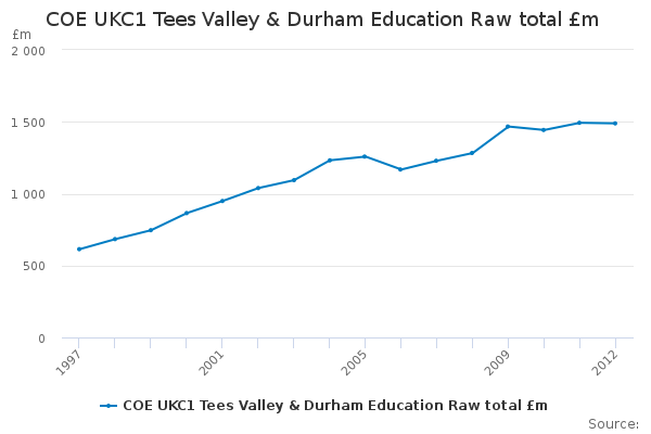 Download this time seriesCOE UKC1 Tees Valley & Durham Education Raw total £m