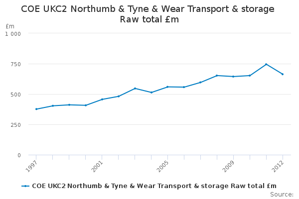 Download this time seriesCOE UKC2 Northumb & Tyne & Wear Transport & storage Raw total £m
