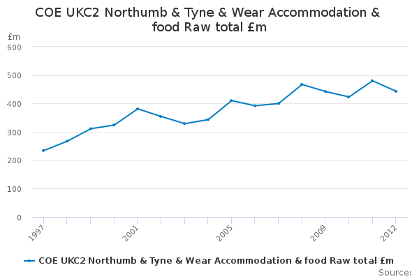 Download this time seriesCOE UKC2 Northumb & Tyne & Wear Accommodation & food Raw total £m