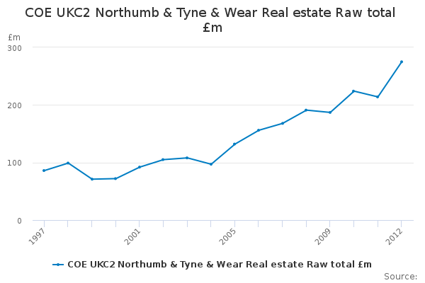 Download this time seriesCOE UKC2 Northumb & Tyne & Wear Real estate Raw total £m