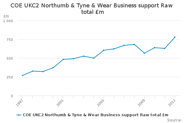 Download this time seriesCOE UKC2 Northumb & Tyne & Wear Business support Raw total £m