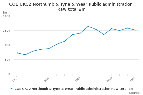 Download this time seriesCOE UKC2 Northumb & Tyne & Wear Public administration Raw total £m