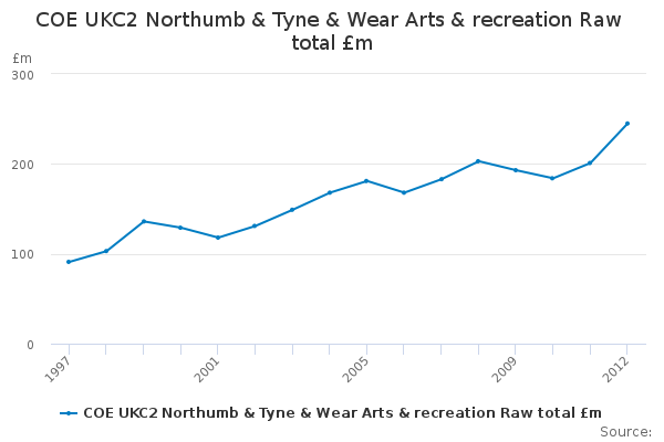 Download this time seriesCOE UKC2 Northumb & Tyne & Wear Arts & recreation Raw total £m