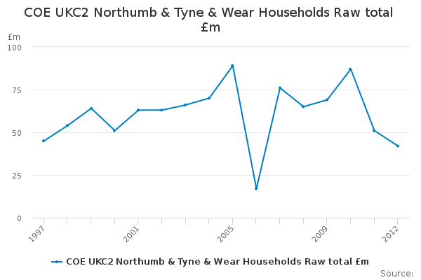 Download this time seriesCOE UKC2 Northumb & Tyne & Wear Households Raw total £m