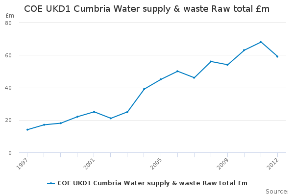 Download this time seriesCOE UKD1 Cumbria Water supply & waste Raw total £m