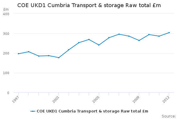 Download this time seriesCOE UKD1 Cumbria Transport & storage Raw total £m
