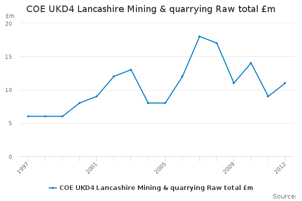 Download this time seriesCOE UKD4 Lancashire Mining & quarrying Raw total £m