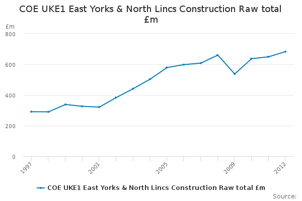 Download this time seriesCOE UKE1 East Yorks & North Lincs Construction Raw total £m