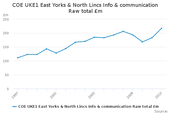 Download this time seriesCOE UKE1 East Yorks & North Lincs Info & communication Raw total £m