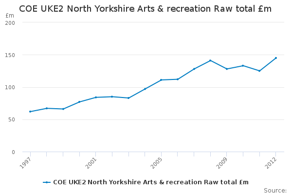 Download this time seriesCOE UKE2 North Yorkshire Arts & recreation Raw total £m