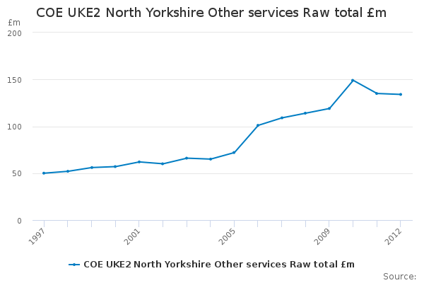 Download this time seriesCOE UKE2 North Yorkshire Other services Raw total £m