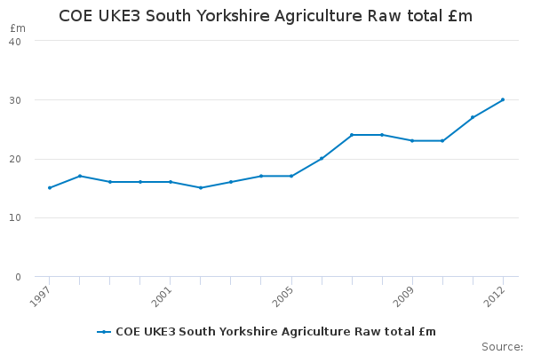 Download this time seriesCOE UKE3 South Yorkshire Agriculture Raw total £m