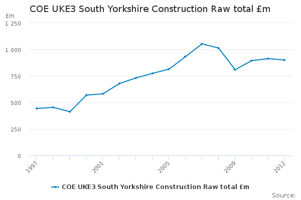 Download this time seriesCOE UKE3 South Yorkshire Construction Raw total £m