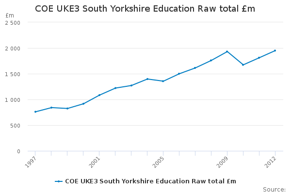Download this time seriesCOE UKE3 South Yorkshire Education Raw total £m