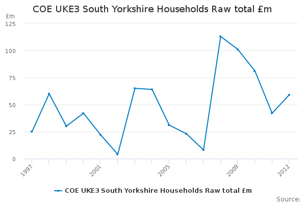 Download this time seriesCOE UKE3 South Yorkshire Households Raw total £m