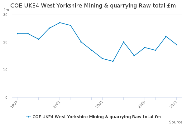 Download this time seriesCOE UKE4 West Yorkshire Mining & quarrying Raw total £m