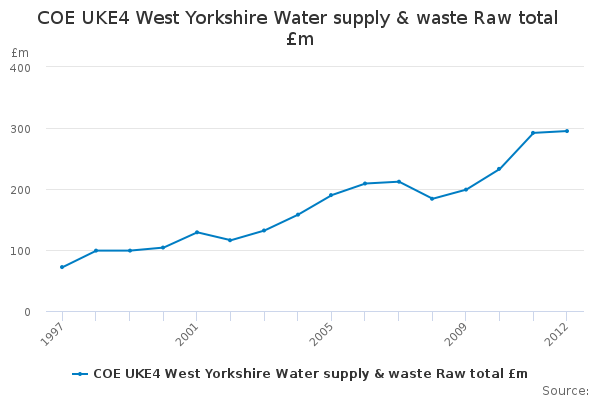 Download this time seriesCOE UKE4 West Yorkshire Water supply & waste Raw total £m