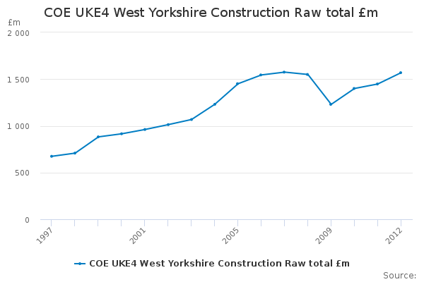 Download this time seriesCOE UKE4 West Yorkshire Construction Raw total £m