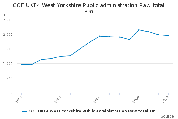Download this time seriesCOE UKE4 West Yorkshire Public administration Raw total £m