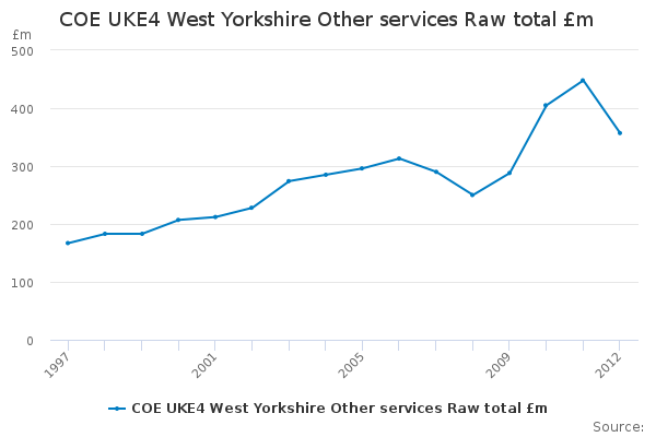 Download this time seriesCOE UKE4 West Yorkshire Other services Raw total £m