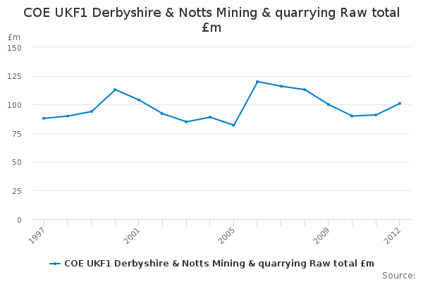 Download this time seriesCOE UKF1 Derbyshire & Notts Mining & quarrying Raw total £m