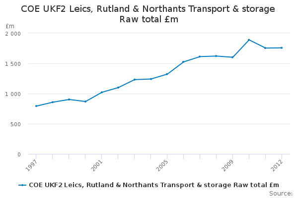 Download this time seriesCOE UKF2 Leics, Rutland & Northants Transport & storage Raw total £m