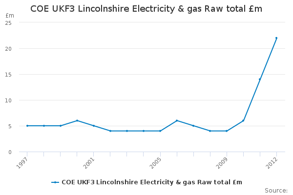 Download this time seriesCOE UKF3 Lincolnshire Electricity & gas Raw total £m
