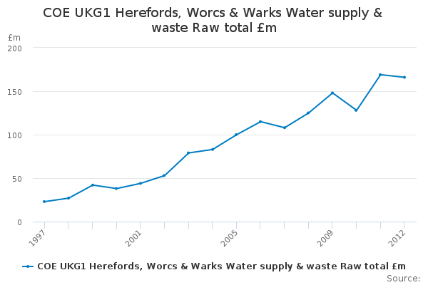 Download this time seriesCOE UKG1 Herefords, Worcs & Warks Water supply & waste Raw total £m