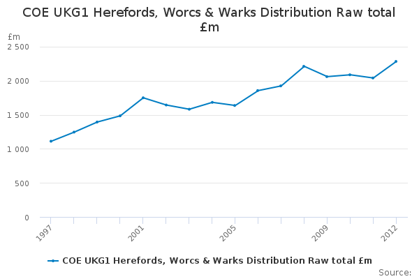Download this time seriesCOE UKG1 Herefords, Worcs & Warks Distribution Raw total £m