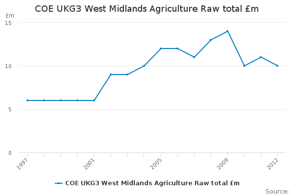 Download this time seriesCOE UKG3 West Midlands Agriculture Raw total £m