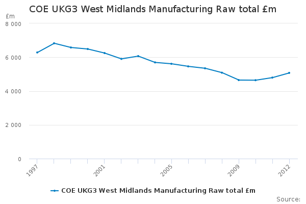 Download this time seriesCOE UKG3 West Midlands Manufacturing Raw total £m