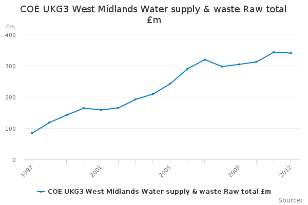 Download this time seriesCOE UKG3 West Midlands Water supply & waste Raw total £m