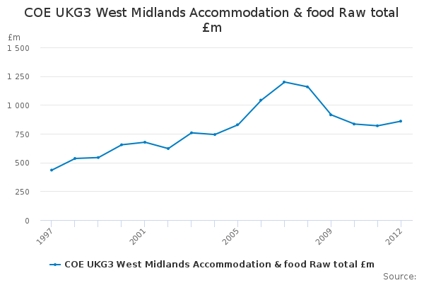 Download this time seriesCOE UKG3 West Midlands Accommodation & food Raw total £m